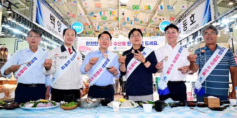 간담회에 앞서 유정복 시장은 관계자들과 함께 강화 해역 안전성을 직접 점검하고, 방사능 검사를 위한 해수 시료를 채취했다. 이어 현장에서 수산물을 직접 구매하고 시식하며 안전성을 확인했다.