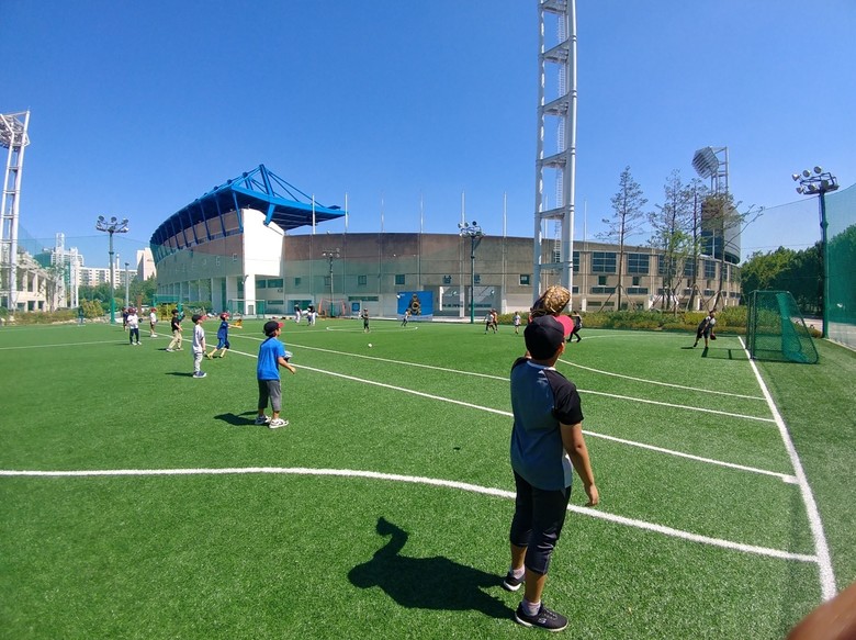 | ▲ 어린이 홈런왕 야구교실 수업 장면 (목동 다목적구장) |