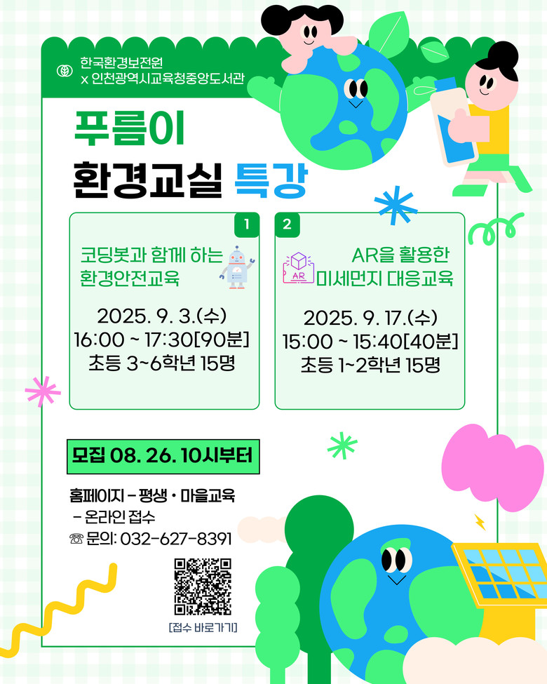 8월 26일 오전 10시부터 중앙도서관 누리집(https://lib.ice.go.kr/jungang)에서 선착순으로 접수하며, 자세한 사항은 중앙도서관 독서문화과(☏032-627-8391)로 문의하면 된다.
