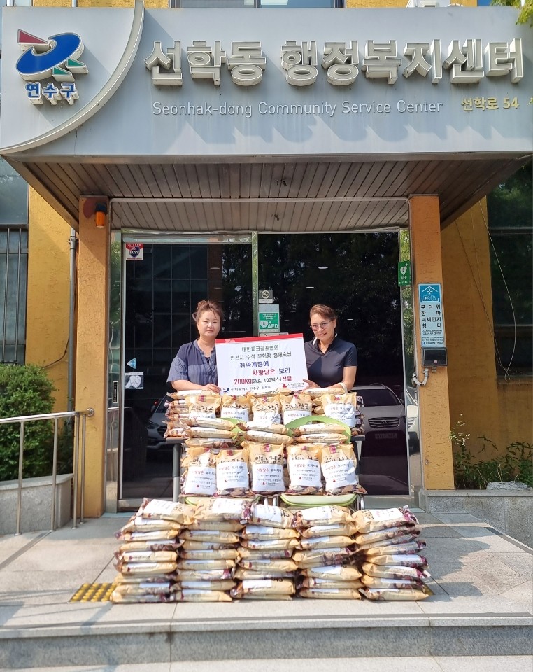 [연수구 세계타임즈=심하린 기자] 연수구 선학동 행정복지센터(동장 임유신)는 지난 8일 대한파크골프협회 인천시 수석 부회장 홍재숙 씨로부터 100만 원 상당의 보리 200kg을 전달받았다.