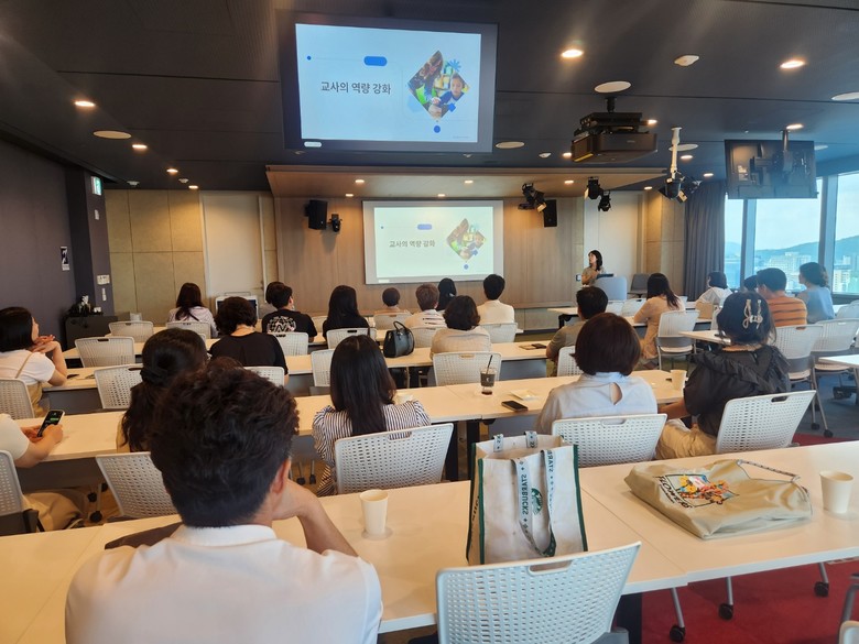 이번 연수는 디지털 기반 교육 혁신을 위한 교원 역량 강화를 목적으로 마련됐으며, 참가자들은 구글코리아의 혁신적 업무 환경을 살펴보고, 생성형 인공지능을 활용한 교육 혁신 방안과 인터랙티브 아트 체험을 통한 융합 교육 방안을 공유했다.