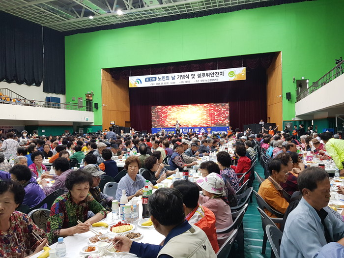 한편 이날 행사에는 도레미봉사에술단 안경헌 단장의 진행으로 신나는 가요장구, 밸리댄스, 라틴댄스, 가요 등 축하위문공연으로 어르신들과 즐거운 시간을 함께 하였다.
