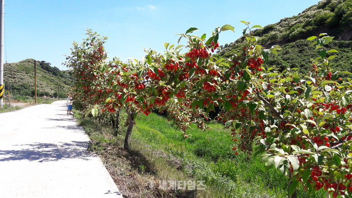 충주시 소태면이 13일 하청마을 오량천변에서 보리수길 걷기 및 보리수 열매따기 체험행사를 열었다.