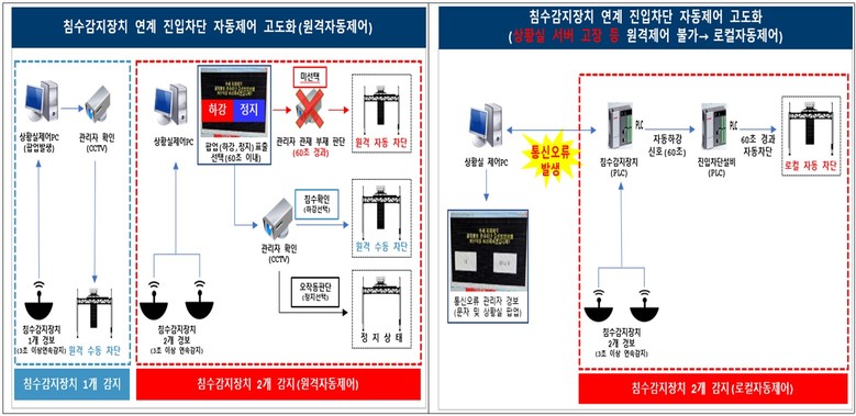 2중 안전 체계 구축을 통한 돌발상황 대응력도 높였다. 지금까지는 오작동을 방지하기 위해 침수경보가 울리면 상황실 관리자가 CCTV를 확인해 차단막을 내리는 방식이다. 하지만 앞으로는 다양한 이유로 일정시간 조치가 이뤄지지 않을 경우 ICT 기술을 활용해 자동으로 차단기가 작동한다.