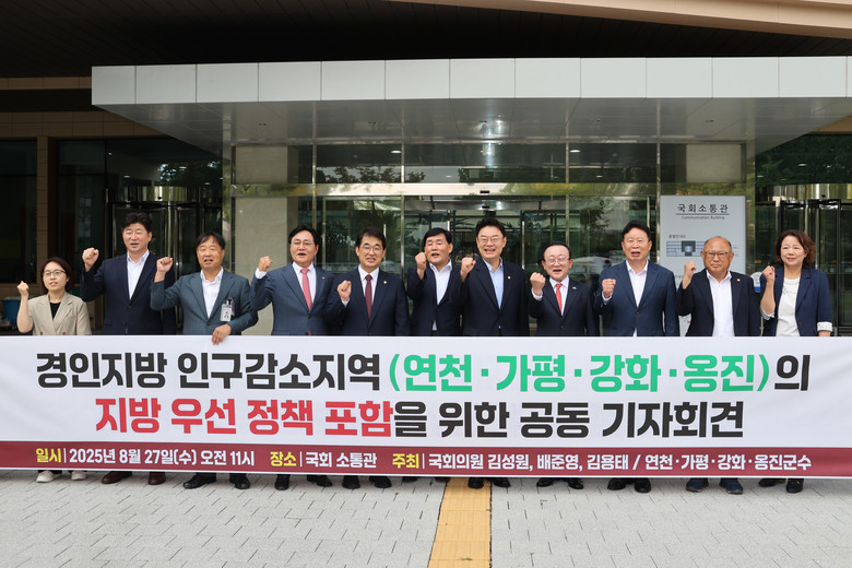 이날 기자회견에는 김성원(동두천·양주·연천), 배준영(중구·강화·옹진), 김용태(포천·가평) 국회의원을 비롯해 4개 군 단체장이 참석, “수도권 내 인구감소지역도 비수도권 지역과 동일하게 국가 정책의 우선 지원 대상에 포함시켜야 한다”는 공동건의문을 발표했다.