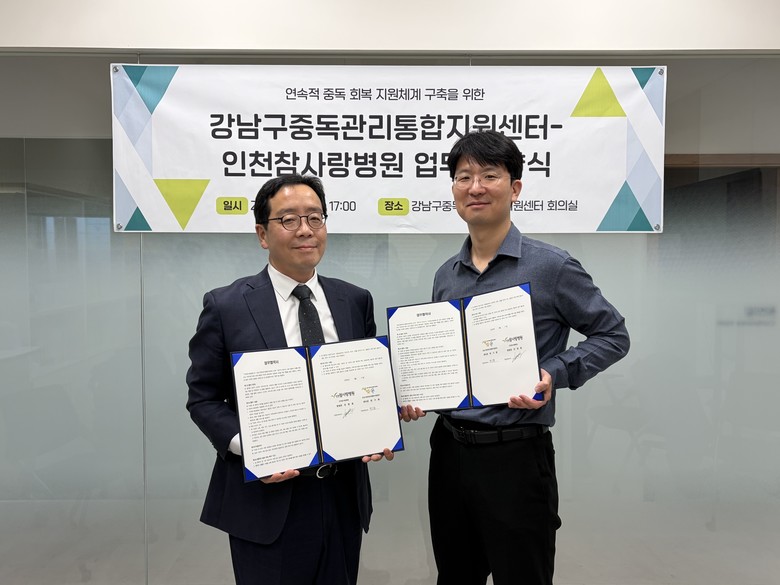 인천참사랑병원은 보건복지부 지정 마약류 치료보호기관으로, 중독 분야의 임상 경험과 다학제 치료 시스템을 갖춘 전문 의료기관이다. 이번 협약에 따라 병원은 중독 치료가 필요한 대상자의 입원 및 외래 치료를 맡고, 강남구중독관리통합지원센터는 퇴원 이후 지역사회 안에서 사례관리와 재활 서비스를 이어가는 방식으로 역할을 분담한다.