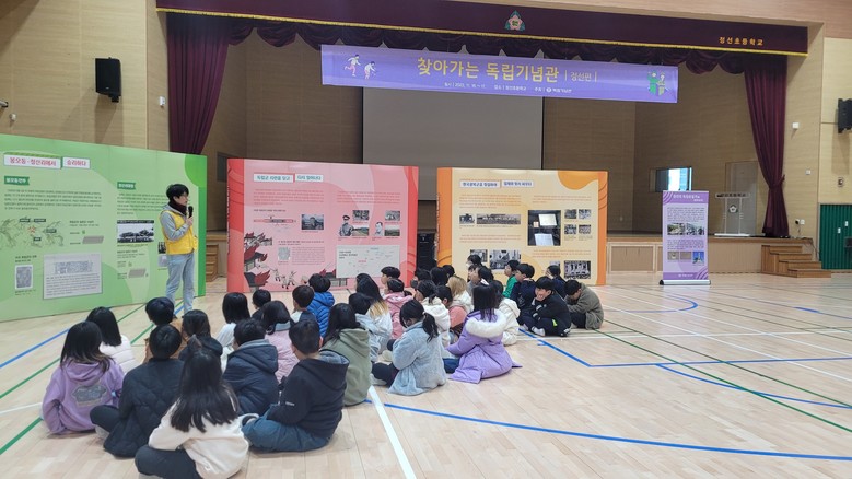 ‘찾아가는 독립기념관’은 독립기념관에서 원거리에 있는 지역의 학생들에게 독립운동에 대해 알리고 나라 사랑 정신을 함양하는 사업으로, 소속 학예연구사들이 학교를 방문하여 체육관에 체험 부스를 설치하고 전시와 체험프로그램을 진행하였다.