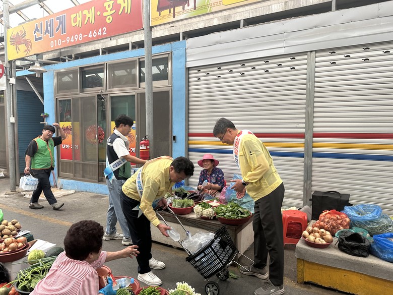 이번 행사는 안전건설국장 및 안전재난과 주관으로, 남원시자율방재단(단장 노시철) 30명이 함께 참여해 무더위 속 공설시장을 찾은 시민과 상인을 대상으로 500ml 얼음생수 3,000병을 시민들에게 제공하며, 폭염 시 행동요령 및 온열질환 예방법을 안내했다.