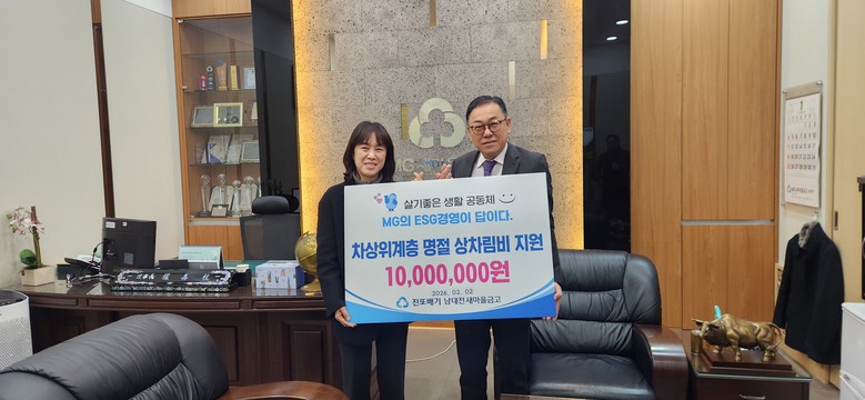 김은정 동장은 “설 명절을 앞두고 어려운 이웃들을 위해 명절차림비를 지원해 주신 남대전새마을금고에 깊이 감사드린다”라며, “기탁된 성금은 꼭 필요한 가정에 소중히 전달해 따뜻한 설 명절이 될 수 있도록 하겠다”라고 답했다.