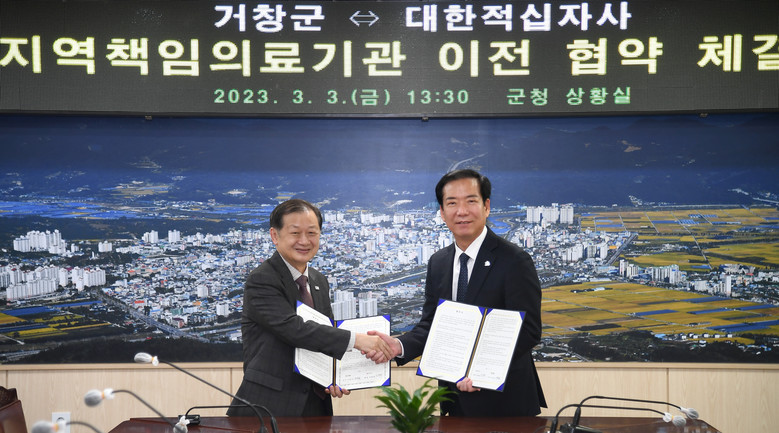 2023년 3월 3일, 거창군과 대한적십자사는 거창적십자병원 이전 신축을 위한 부지조성 업무협약을 체결했다. 군과 적십자사는 역할을 분담해 군은 부지조성을, 적십자사는 병원 건축을 하기로 했다.