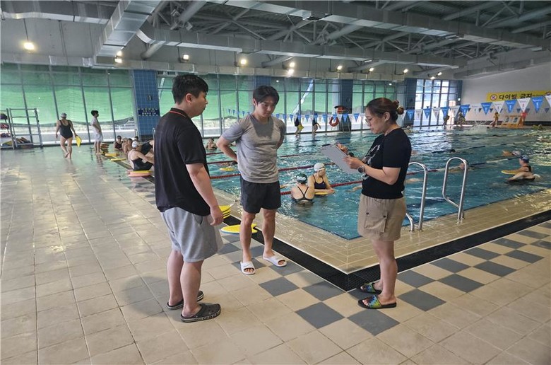 점검 항목은 ▲수상안전요원의 배치 및 매뉴얼 숙지 여부 ▲수영장 수질 및 욕조 상태 ▲냉방·환기설비 가동 상태 ▲탈의실·샤워실의 청결도 ▲직원 근무환경 및 폭염 대응물품 비치 ▲실외 이동 동선 내 비상 대피 유도선 확보 등이다.