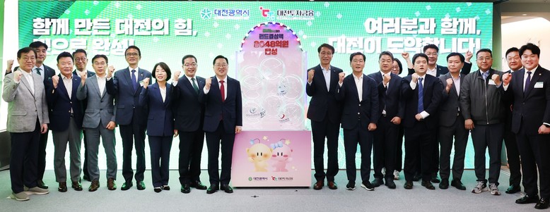 시는 29일 D-유니콘라운지에서 ‘대전 D-도약 펀드’ 결성식을 열고 총 2,048억 원 규모의 모펀드 출범을 공식 발표했다. 결성식에는 이장우 대전시장, 이호성 하나은행장, 황진선 NH농협은행 대전본부장, 류형주 K-water 부사장, 이승찬 계룡건설 회장을 비롯한 주요 출자자 대표와 지역 혁신기업 관계자 등 100여 명이 참석했다.