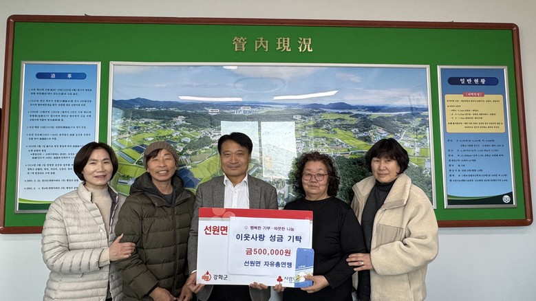이에 이정실 선원면장은 “지역을 위해 꾸준히 나눔에 동참해 주시는 자유총연맹 선원면분회에 깊은 감사의 말씀을 드리며, 앞으로도 이웃을 살피고 함께하는 따뜻한 선원면을 만들어 가겠다”고 화답했다.