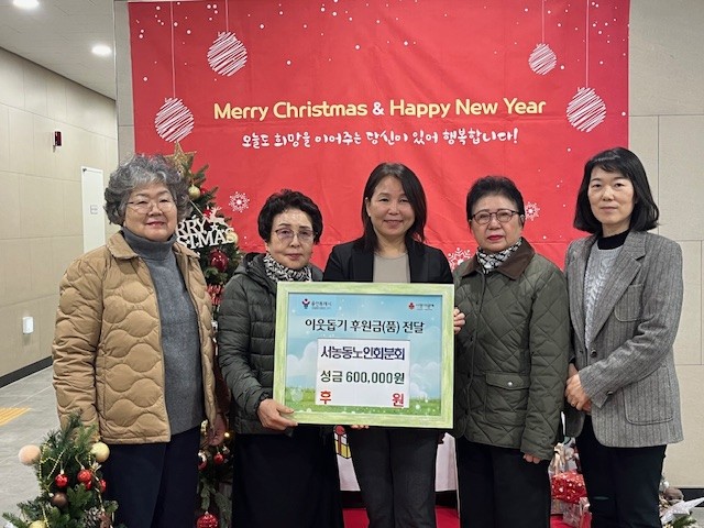 ▲ 서농동 노인회분회는 같은 날 성금 60만 원을 전달하며 연말 이웃돕기에 동참했다. 노인회분회는 “작은 정성이지만 도움이 필요한 이웃들에게 보탬이 되길 바란다”고 했다.