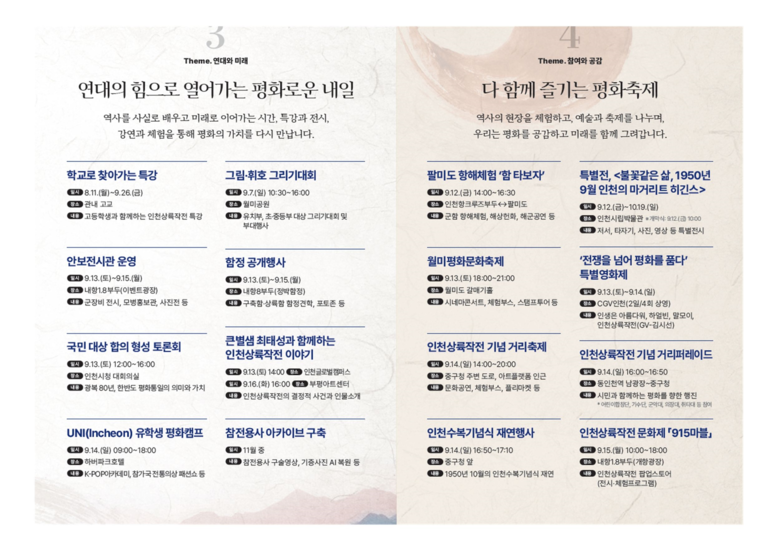 인천시는 인천상륙작전의 역사적 의미를 공유하고 화합과 평화의 메시지를 전달하기 위해 다양한 문화행사를 준비했다.