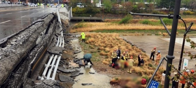 사고 현장이 찍힌 CCTV에서는 보행로의 일부가 순식간에 무너져 내린 것이 포착 되었다. 관계자는 "어떤 조짐이 보인 사고가 아닌 갑자기 일어난 사고"라며 "CCTV 영상을 보면 보행로가 대피할 시간도 없이 삽시간에 무너져 내렸다"고 말했다.