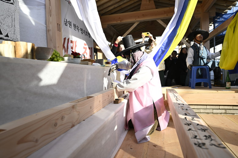 이날 행사에서 가장 큰 관심을 모은 순간은 상량문 작성이었다. 상량문은 건물의 영원한 보존과 거주자의 복을 기원하는 문구로 마룻대 양쪽에는 ‘용(龍)’자와 ‘귀(龜)’자를 쓰고, 올리는 날짜와 축원 문장을 적는 것이 전통이다. 최경식 남원시장이 직접 상량문을 작성해 명지호텔의 성공적인 완공과 번영을 기원했으며, 소리꾼의 상량 소리에 맞춰 상량문이 적힌 마뭇대가 올려지며 고사가 마무리됐다.