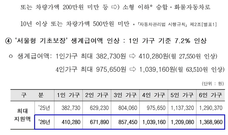 올해 서울형 기초보장제도의 주요 변화는 ▴생계급여액 상승 ▴청년 적용 연령 및 이들에 대한 근로·사업소득 공제액 확대 ▴자동차 재산 기준 완화 등이다.