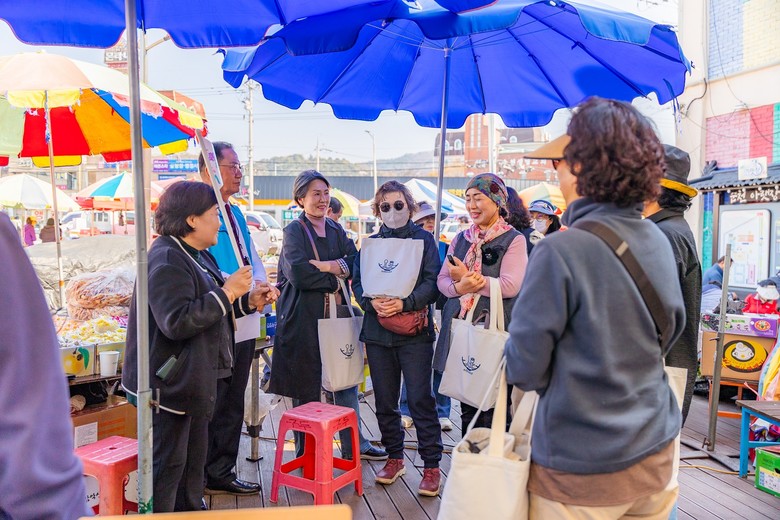 ▲ 순천 아랫장투어중인 여행객들, 순천의 일상이 여행이 되고있다