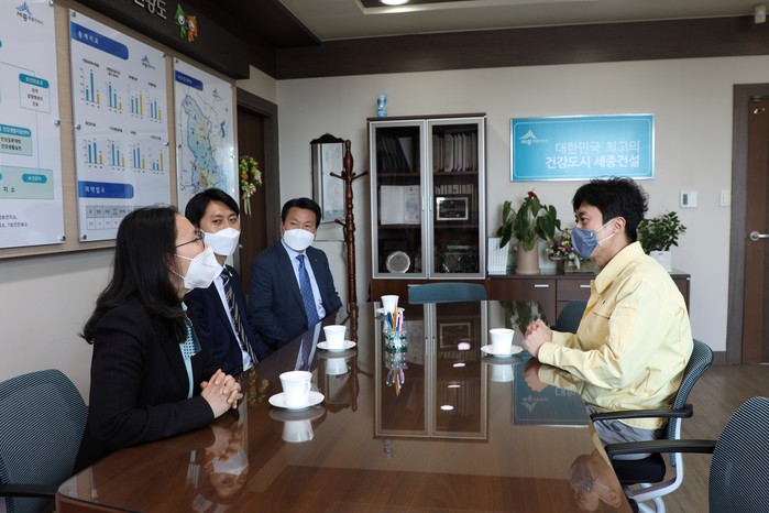 이태환 의장과 이윤희 부의장은 권근용 세종시보건소장과 박미선 세종시보건환경연구원장을 각각 만난 자리에서 코로나19 대응 및 백신 접종 상황, 애로사항 등을 청취했다.