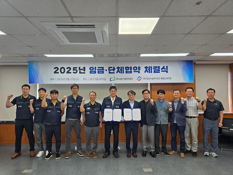문기봉 대구공공시설관리공단 이사장은 “노사 간 신뢰를 바탕으로 이뤄낸 원만한 협약 결과를 뜻깊게 생각한다”며, “이번 협약이 앞으로의 노사 상생과 조직 발전의 토대가 되길 바란다”고 말했다.