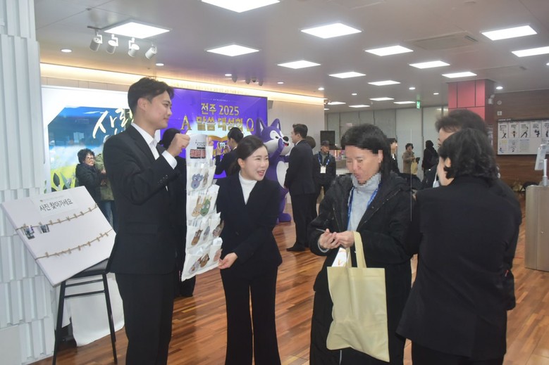 [전주시=세계타임즈 = 이영임 기자] 15일 신천지예수교 증거장막성전 도마지파(지파장 최중일·이하 신천지 전주교회)가 개최한 ‘전주 2025 말씀대성회’가 전주시 덕진구 팔복동 전주교회에서 열린 가운데 1층 로비에서 ‘신년맞이 행운나눔’ 말씀 메시지 뽑기 이벤트가 마련돼 시민이 참여하고 있다.