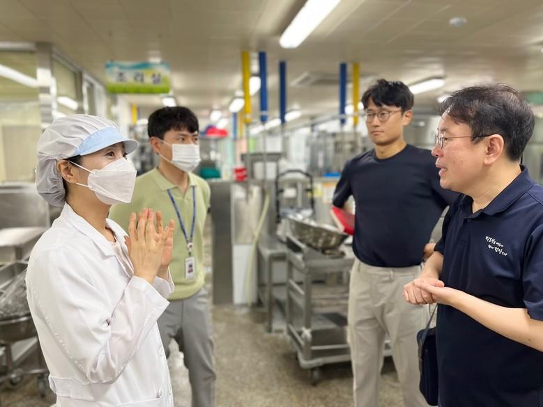 이어서 방문한 매호중에서는 조리실 환기시설, 종사자 휴게실, 학생 급식실 등의 현장을 살펴보며 향후 급식실 현대화사업 계획 및 급식실 종사자들의 애로사항 등에 대한 개선 방향을 논의했다.