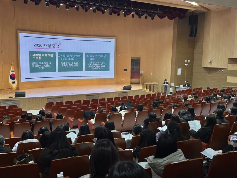 지난 11월 25일은 유치원장, 12월 2일은 유치원감과 교육전문직을 대상으로 배움자리를 완료했다. 또한, 유아교육 전문성 강화를 위한 교육과정 개정위원이 ‘2026 충남 유치원 교육과정 살펴보기’를 도교육청 업무담당 장학사가 ‘2026 충남 유아교육 주요정책 들여다보기’를 전달했다.