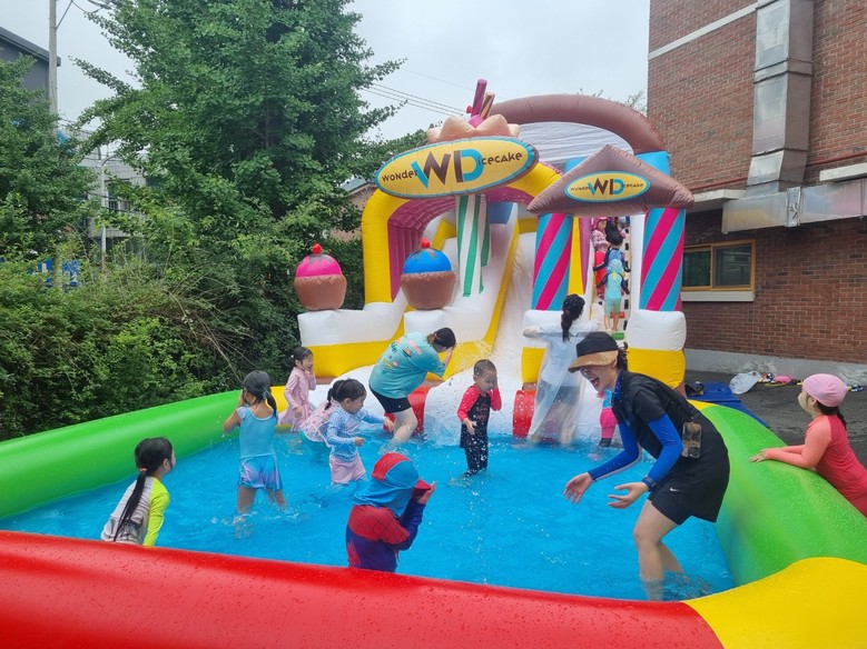 뜨거운 여름 햇살 아래, 아이들의 웃음소리가 유치원 마당을 가득 채웠다. 물방울이 반짝이는 풀장에서 물총놀이를 하고, 워터슬라이드를 타며 친구들과 신나게 물놀이를 즐겼다. 4세 정소윤 유아는 "친구들과 함께 물놀이를 하니 정말 재밌어요!"라며 활짝 웃었다.