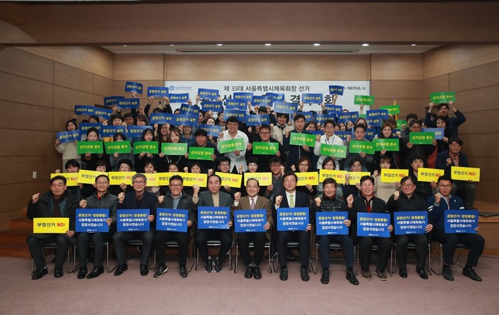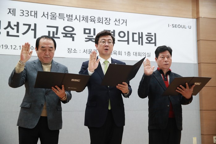 서울특별시체육회(회장 박원순)가 11일 서울시체육회 1층 대회의실에서 본회 및 회원단체 관계자를 대상으로 공정하고 투명한 선거문화 조성을 위한 공정선거 교육 및 결의대회를 개최했다.