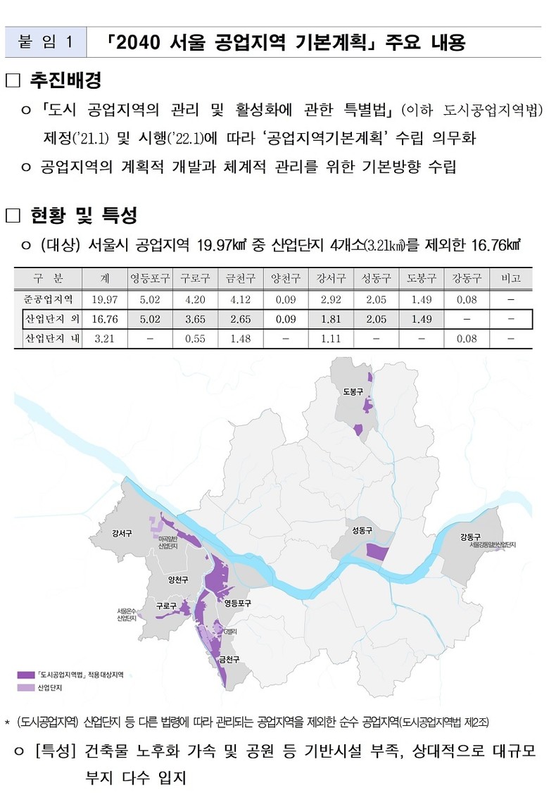 특히 서울시는 기본계획 확정과 함께, 침체된 공업지역을 신산업 중심의 복합공간으로 재편하기 위한 ‘산업혁신구역’ 제도를 본격 가동한다.