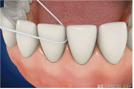 | ▲ 잇몸 수술을 받은 경우에 잇몸의 염증이 제거되고 잇몸이 회복하면 그림에서처럼 잇몸이 내려가고 치아의 뿌리가 노출된다. 노출된 치아 뿌리 사이로 음식물이 껴서 염증이 재발되지 않게 하려면 치간칫솔로 사이사이 청소해 줘야 한다. |