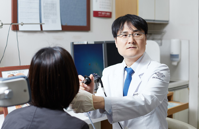 | ▲이비인후과 이영찬 교수가 내시경 검사를 진행하고 있다. |