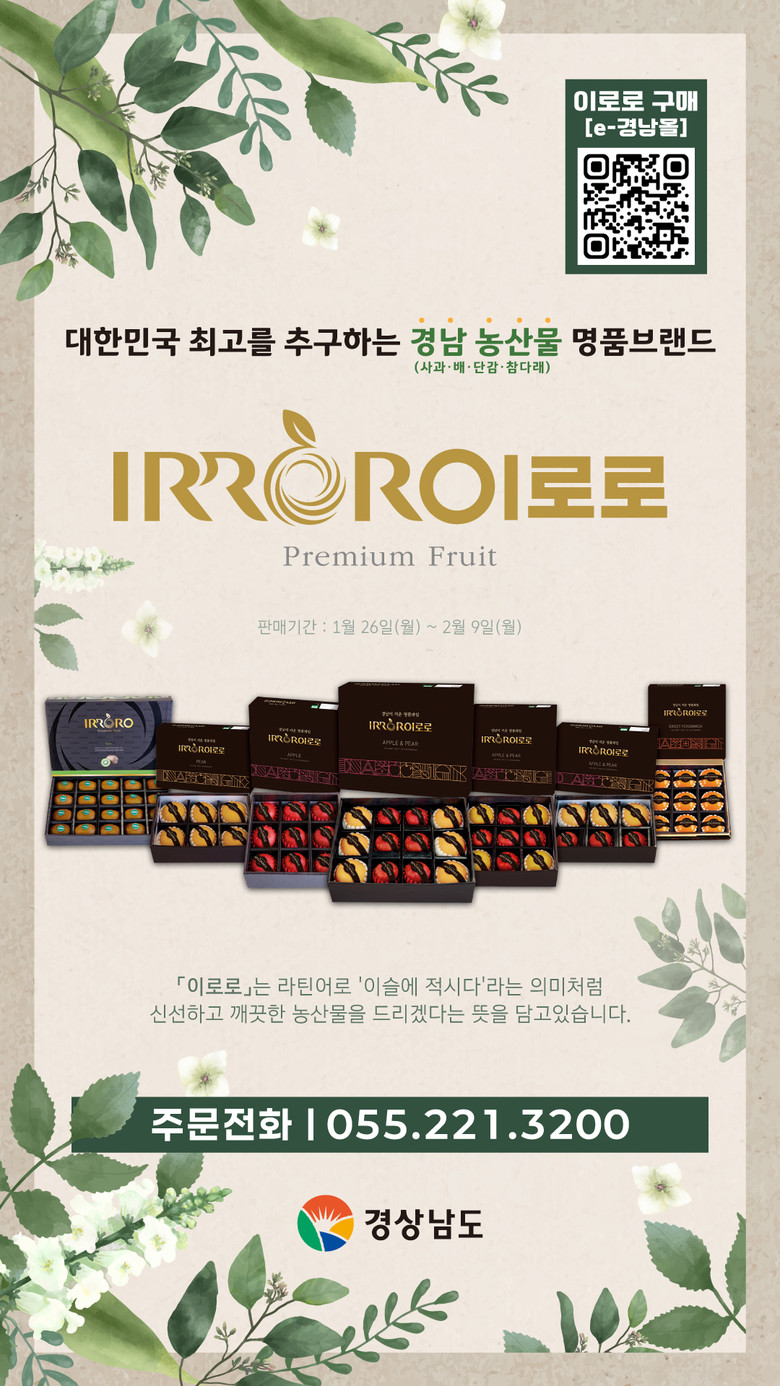 구매는 e경남몰과 11번가, 지마켓 등 온라인 쇼핑몰에서 ‘이로로’를 검색하면 가능하며, e경남몰에서는 설맞이 기획전 쿠폰을 적용해 최대 30% 할인된 가격으로 구매할 수 있다.