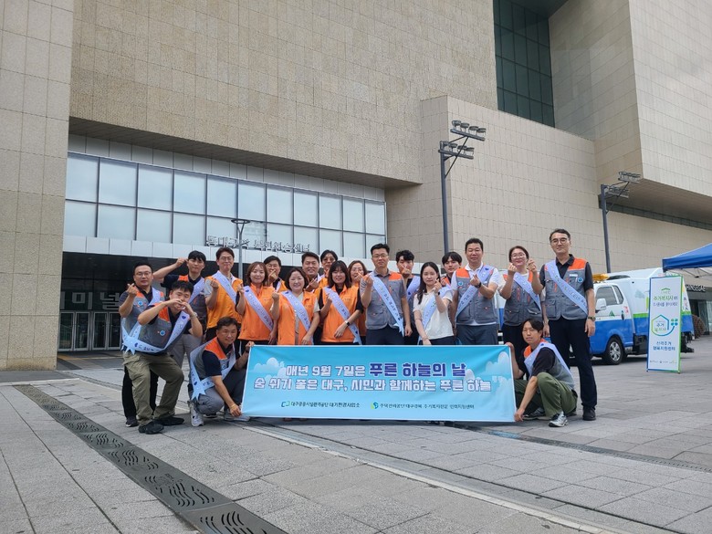 ▸ 공공기관 연대와 합동 정화활동으로 환경보전 실천 확대 [세계타임즈=대구 한윤석 기자] 대구공공시설관리공단(이사장 문기봉) 대기환경사업소는 지난 9월 5일(금) ‘제6회 푸른 하늘의 날’을 맞아 주택관리공단 대구경북지사 주거복지센터와 함께 동대구역 광장에서 시민 대상 대기환경 홍보와 환경정화 활동을 펼쳤다.