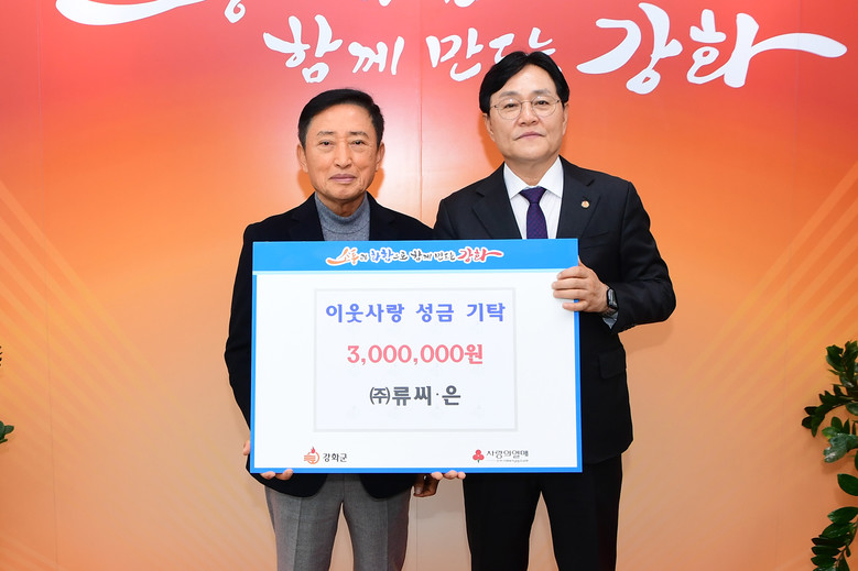 [강화군 세계타임즈=심하린 기자] 강화군(군수 박용철)은 ㈜류씨.은(대표 유동섭)이 지난 2일 사회복지공동모금회를 통해 성금 300만 원을 기탁했다고 밝혔다.