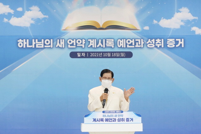 신천지예수교 증거장막성전(이하 신천지예수교회)의 이만희 총회장이 18일 요한계시록의 예언의 뜻과 그 예언대로 이루어진 실상을 알리는 ‘하나님의 새 언약 계시록 예언과 성취 증거’ 세미나를 개최한다고 밝혔다.