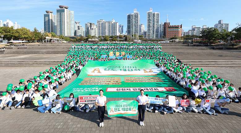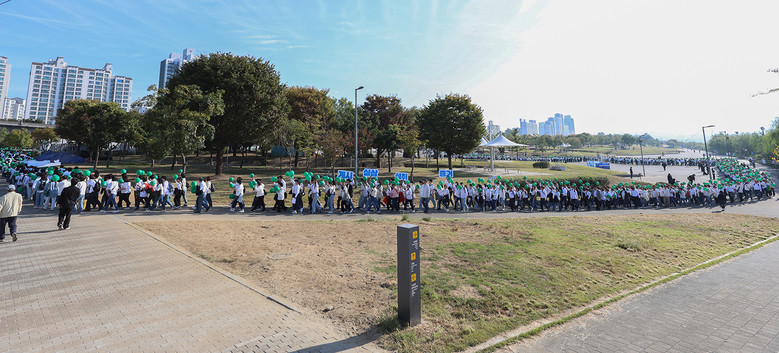 | ▲13일 뚝섬한강공원에서 신천지 과천‧왕십리교회 성도 2300여 명이 ‘신천지 전도 대성회’ 홍보 퍼포먼스를 펼치고 있다. [사진 제공 = 신천지 과천교회] |
