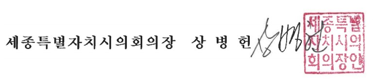 [세종 세계타임즈=이채봉 기자] 세종특별자치시의회에서 재의결된 세종특별자치시 출자ㆍ출연 기관의 운영에 관한 조례 일부개정조례를 「지방자치법」 제32조제6항 후단에 따라 공포한다.