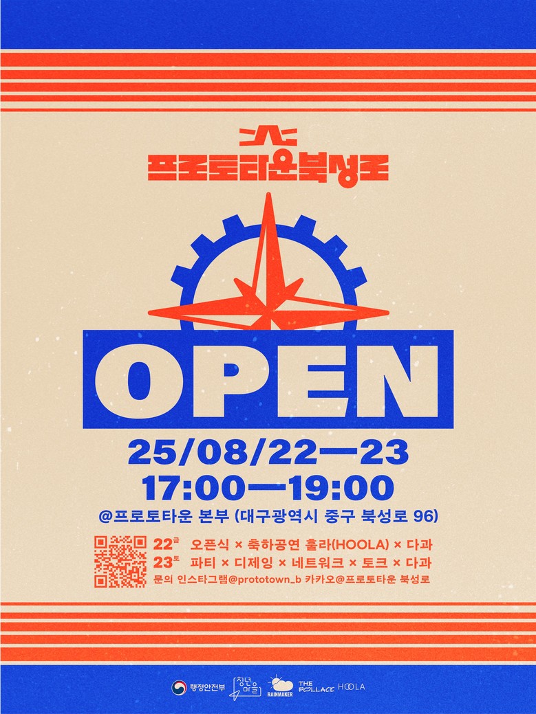 오픈행사는 ‘프로토타운 본부’(북성로 96)에서 진행된다. 청년들이 직접 기획한 공연과 네트워킹 프로그램 등을 통해 누구나 함께 즐길 수 있는 축제의 장이 마련될 예정이다.