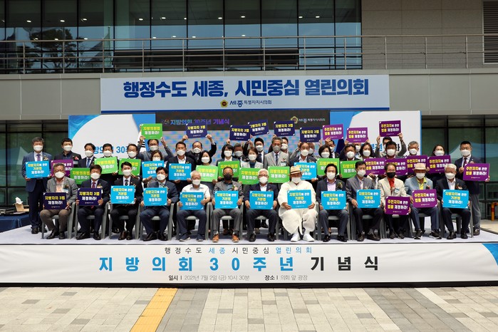 [세종=세계타임즈 이채봉 기자] 세종특별자치시의회(의장 이태환)는 2일 세종시의회 청사 앞 광장에서 전현직 시의원을 포함한 내외빈 90여명을 초청해 ‘지방의회 30주년 기념식’을 개최했다.