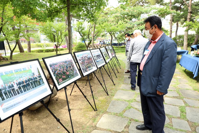 ▲ 전 연기군의원 의원들이 행사장 한편에 마련된 세종시의회 30년 역사 사진전을 둘러보고 있다.