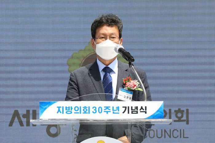 ▲ 세종시의회 이태환 의장이 지방의회 30주년 기념사를 하고 있다.