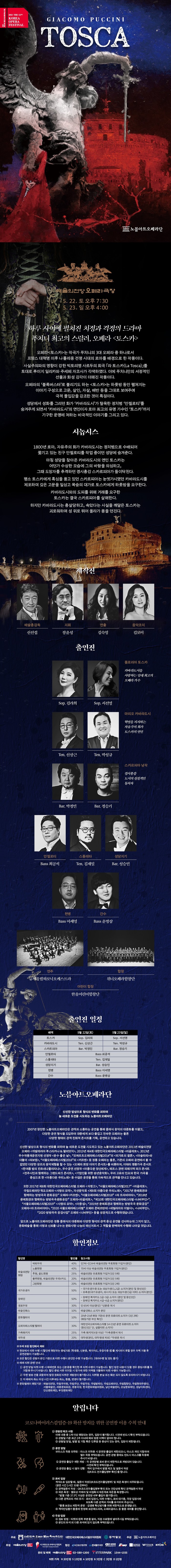 오페라 <토스카>는 작곡가 푸치니의 3대 오페라 중 하나로 프랑스 대혁명 이후 나폴레옹 전쟁 시대의 로마를 배경으로 한 작품이다.