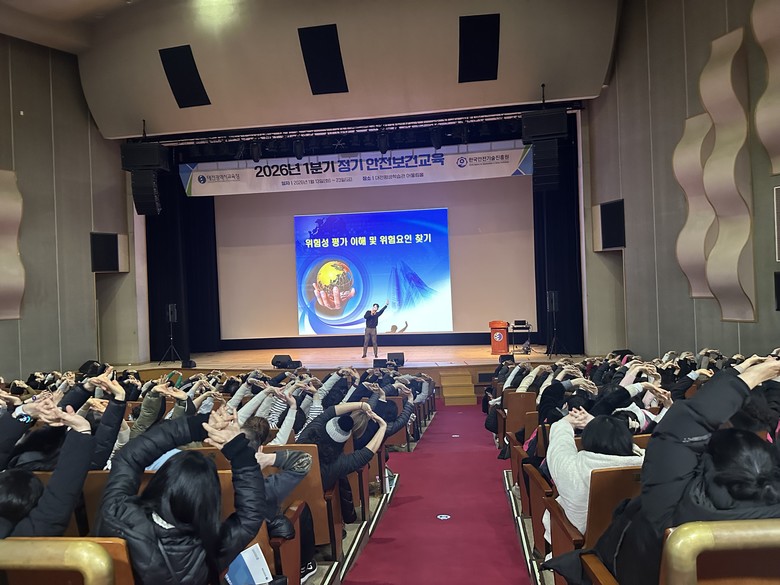 [대전 세계타임즈=이채봉 기자] 대전시교육청은 1월 13일부터 23일까지 총 6회에 걸쳐 대전평생학습관 어울림홀에서 공립학교 및 기관 소속 현업 근로자 2,378명을 대상으로 ‘2026년 1분기 정기 안전보건교육’을 실시한다고 밝혔다.