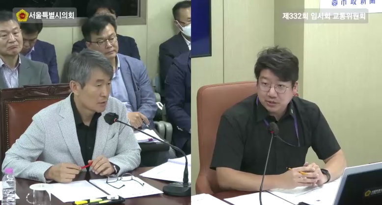 | ▲ 본 사안을 논의하는 문성호 서울시의원(우)과 백호 서울교통공사 사장(좌) |