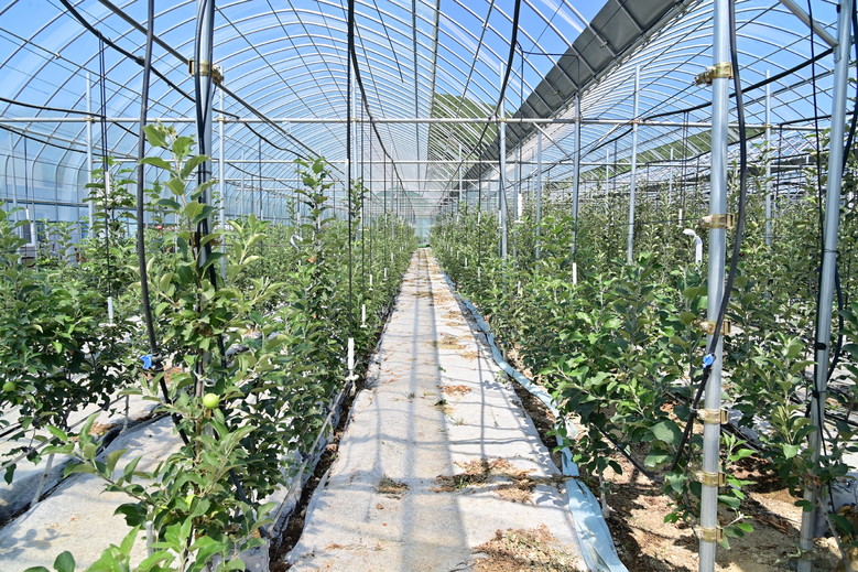 스마트과수원 특화단지 조성 사업은 2축형·다축형·밀식재배 등 기계화에 적합한 구조의 평면형 과수원을 조성하고, 내재해·조·중생종 품종으로의 갱신과 재해예방시설 확충을 통해 기후변화에 대응한 안정적 생산 기반을 구축하도록 돕는 사업이다.