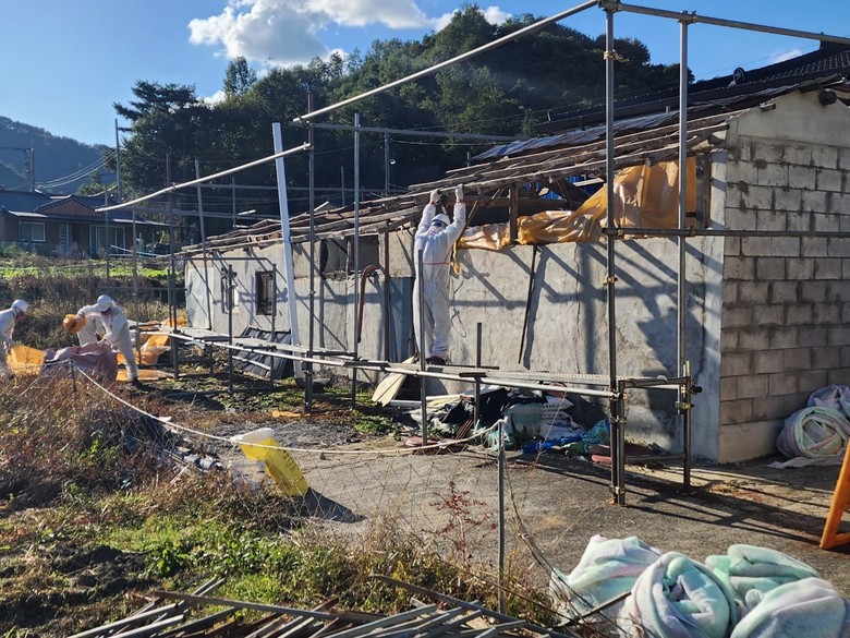 | ▲ 지난해 슬레이트 처리 지원 사업으로 슬레이트를 철거하고 있는 모습 |