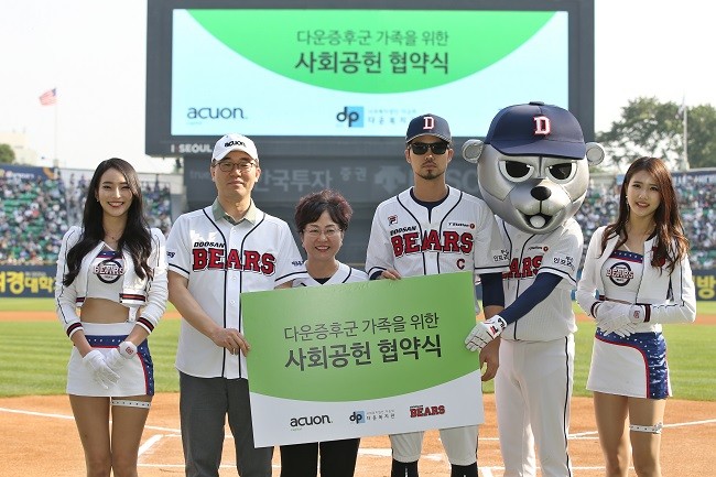 또 경기 직전 애큐온캐피탈, 사회복지법인 다운회 산하 다운복지관과 ‘다운증후군 가족을 위한 사회공헌 협약식’을 진행했다. 이 협약식에는 애큐온캐피탈 사회공헌운영위원장 길광하 상무, 다운복지관 김인숙 관장, 주장 오재원이 참석했다.