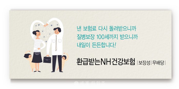 [세계타임즈 김장수 기자] NH농협생명이 20일에 주요 질병 보장과 건강관리 자금을 함께 준비할 수 있는 「환급받는NH건강보험(보장성,무배당)」 신상품을 출시했다고 밝혔다.